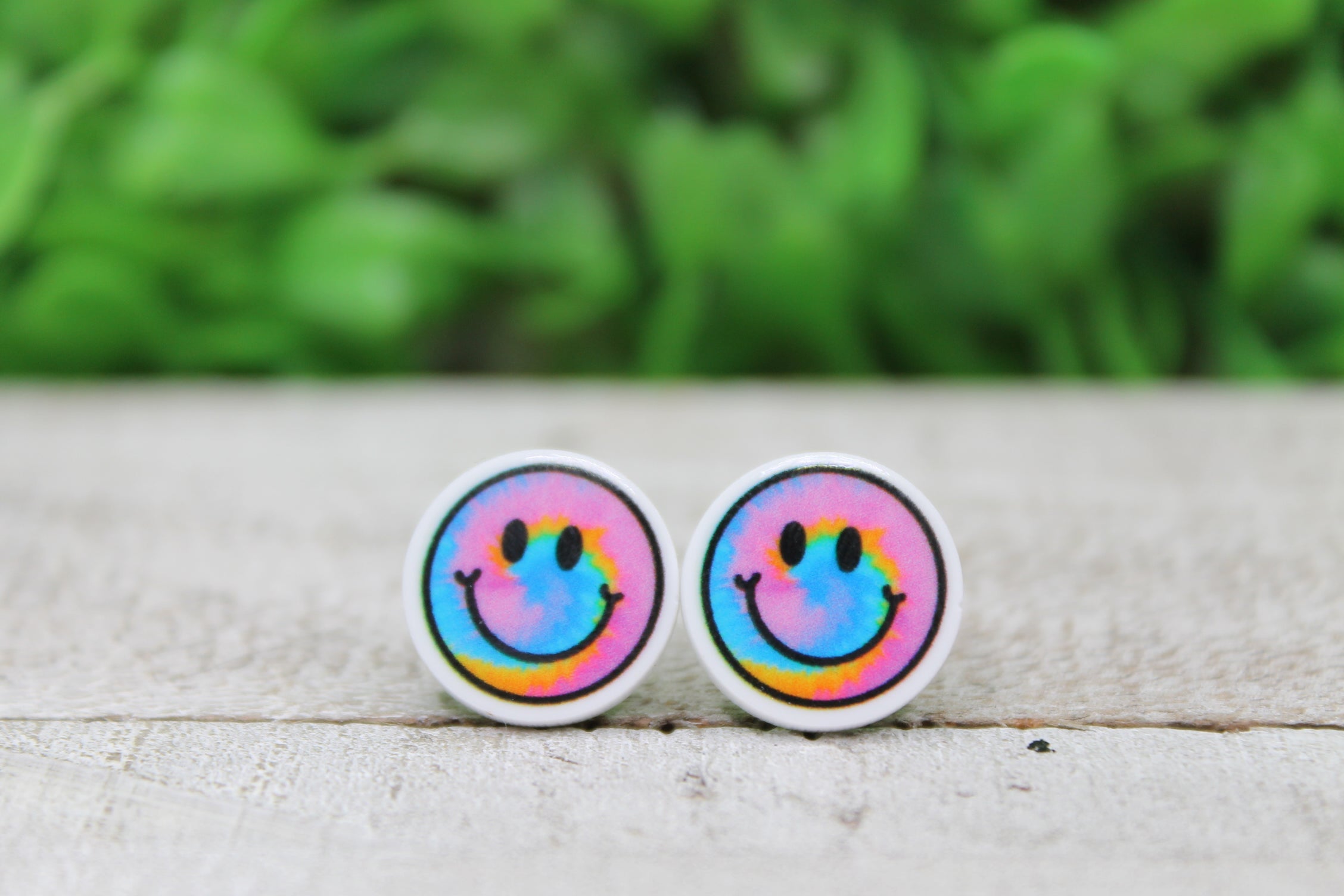 Tie Dye Smiley Face • Acrylic Stud Earrings