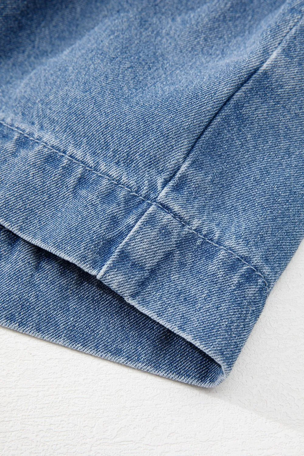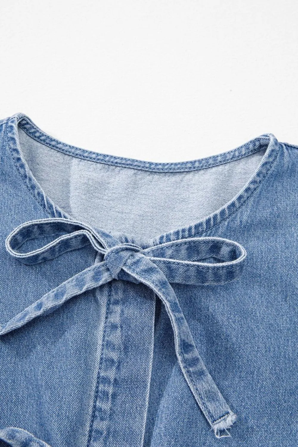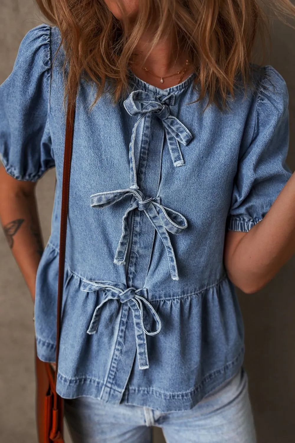 Tied Front Puff Sleeve Peplum Denim Shirt