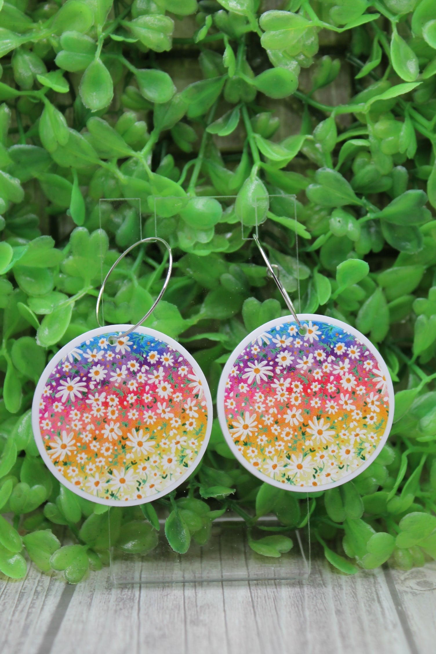 Tiny Daisies Colorful Circle Hoop Dangle Earrings