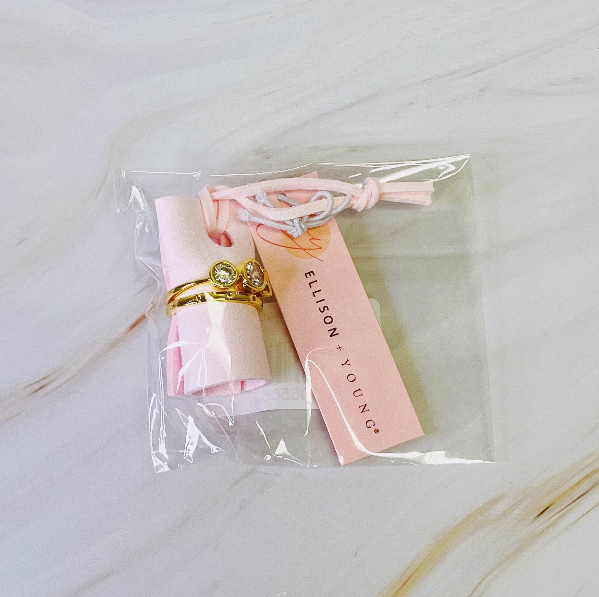 This trio bezel stone ring set of 2 features a classic and chic design, making it a lovely addition to any outfit. The set includes two rings that can be worn alone or together for a versatile and stylish look. Add a touch of elegance with this beautiful set.