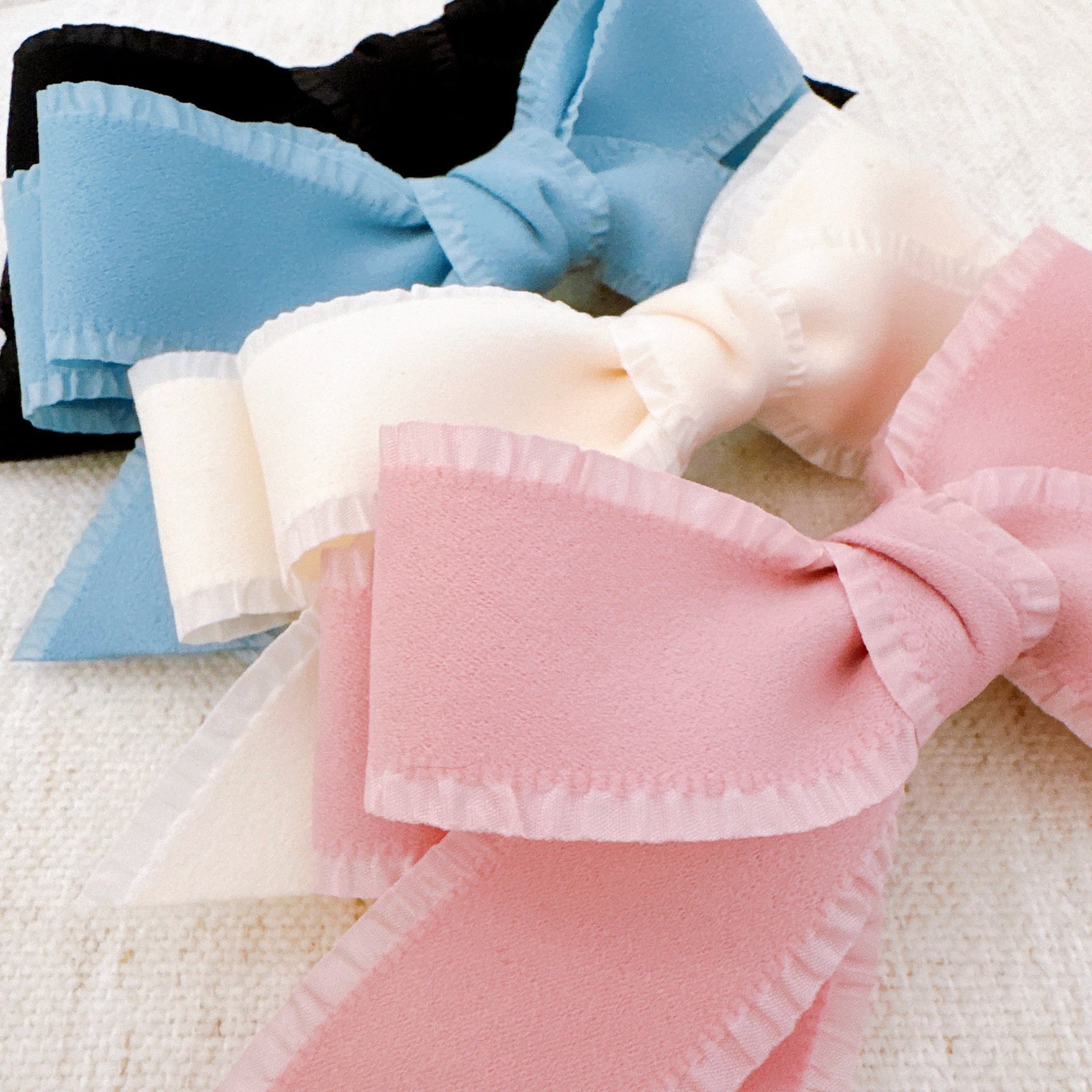 This hair clip features a unique triple bow design for a chic and modern look. Gorgeous fabric with delicate edges add more luxurious touch! Expertly crafted for a flawless finish.