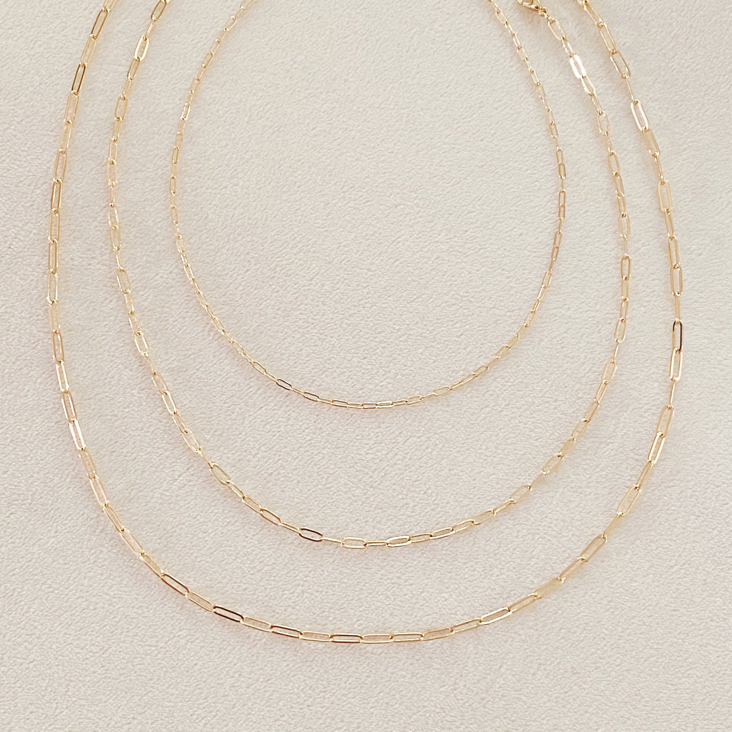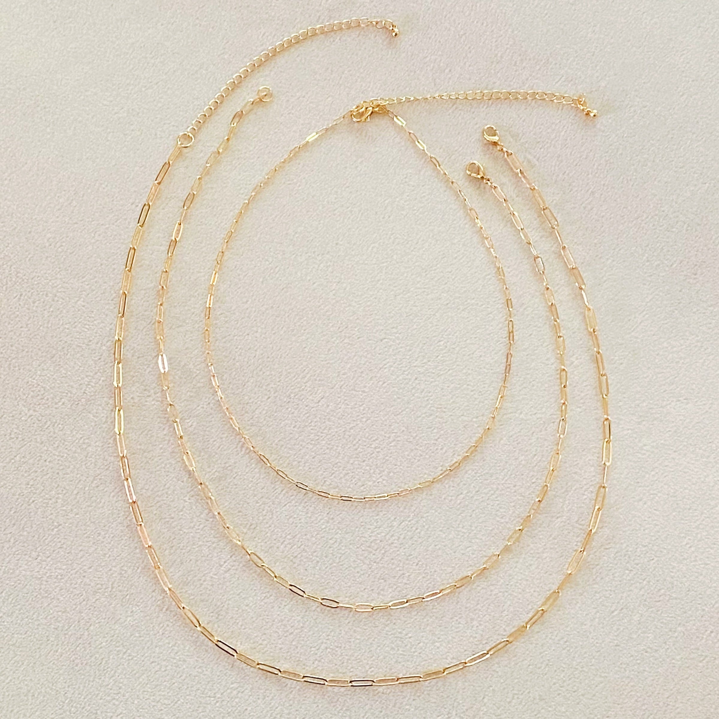 3 different link chain necklaces come in this set. Each chain has its own closure and can be worn individually. A set if slim and dainty link chains make such stylish and famine harmony!