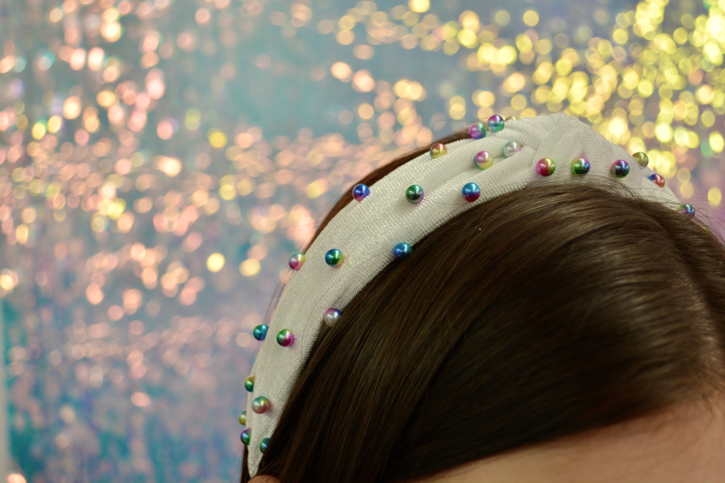 This Unicorn Pearl Headband will add a magical touch to your look! The iridescent pearls subtly shimmer, making you stand out in a fun and whimsical way. The perfect accessory for any unicorn lover or anyone looking to add some sparkle to their wardrobe. (Unicorn magic not included.)