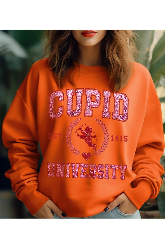 DIGITAL PRINTED SEQUINS CUPID UNIVERSITY,VALENTINE UNISEX FLEECE SWEATSHIRT,GRAPHIC TEE,GRAPHIC TSHIRTS,TSHIRTS,TEES