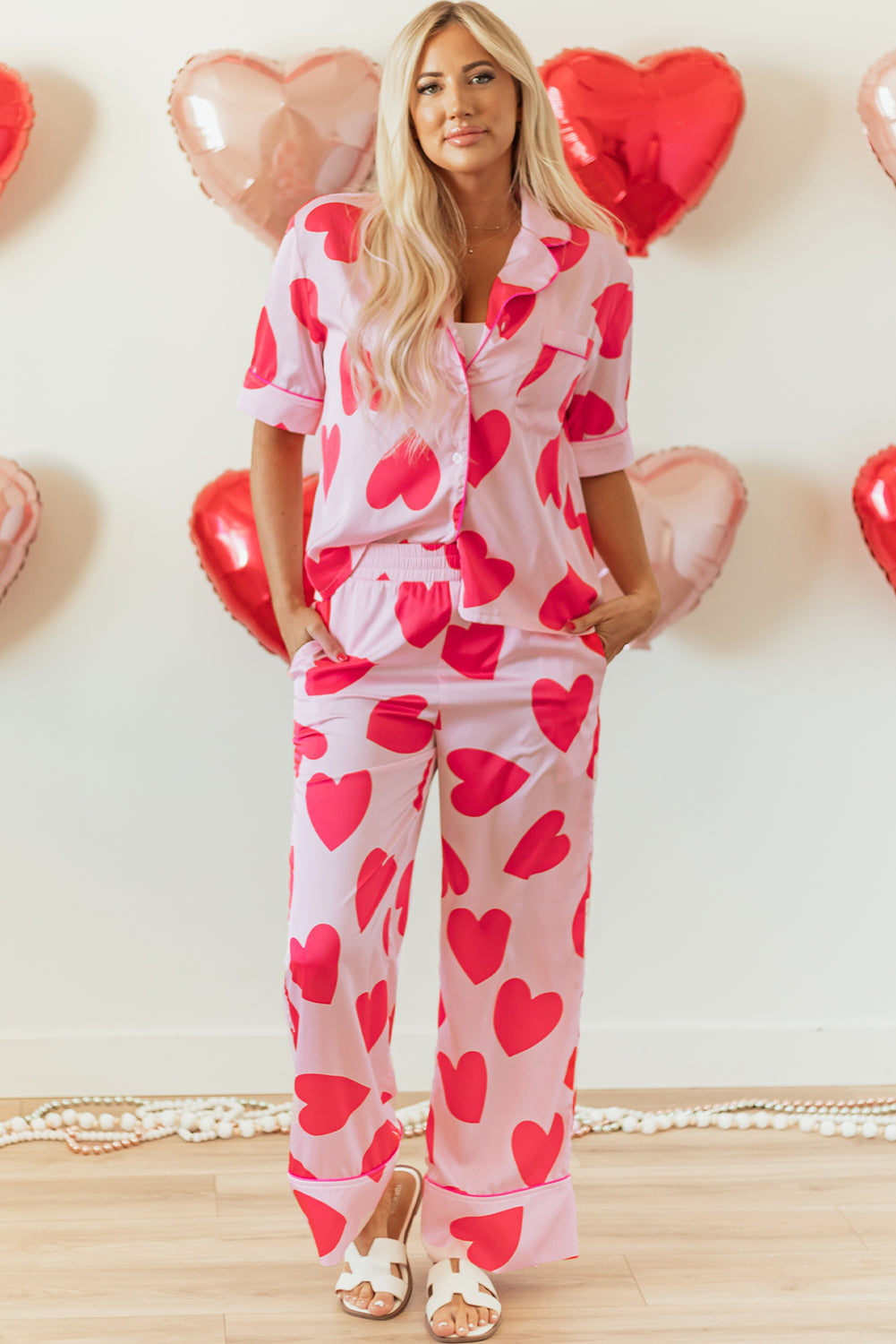 Get ready to cuddle up in these cute Valentine's Short Sleeve Pants Pajamas! Featuring traditional heart patterns and comfortable material, you'll feel the love in this set. Rock it with slippers for extra warmth, or show it off as a darling sleepwear style.