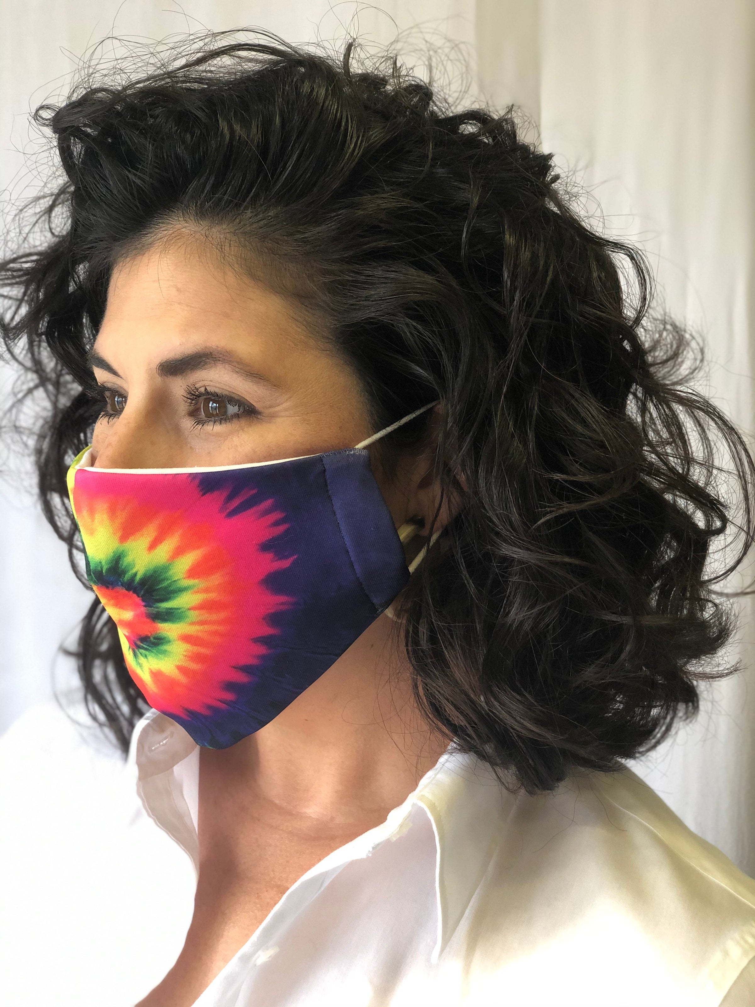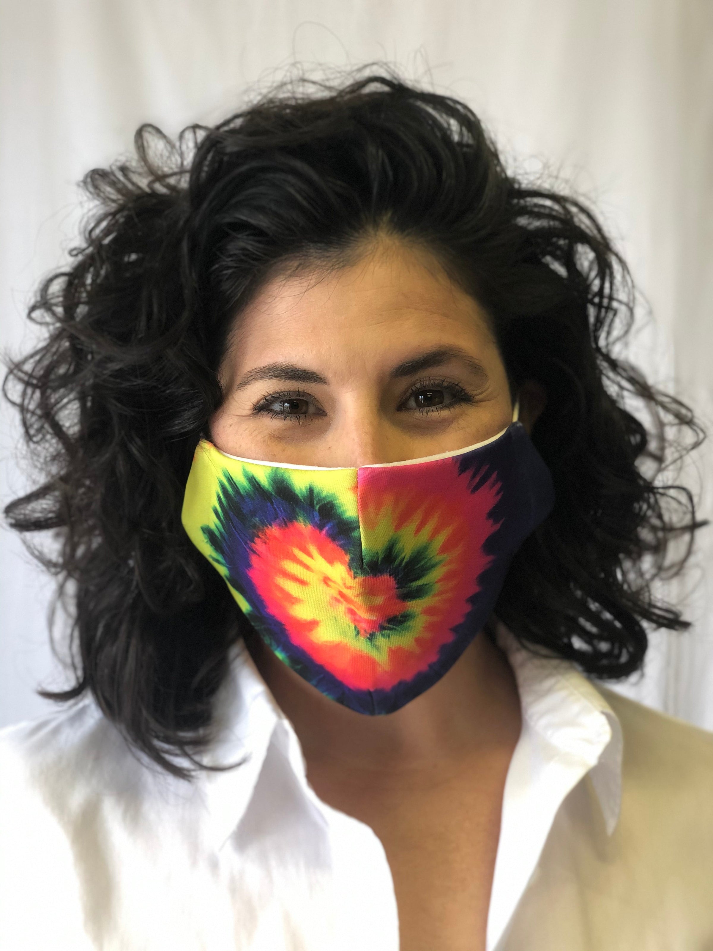 Mask Up in style! This reusable face mask is a vibrant swirl rainbow tie dye print and features ear loops. One size fits most.