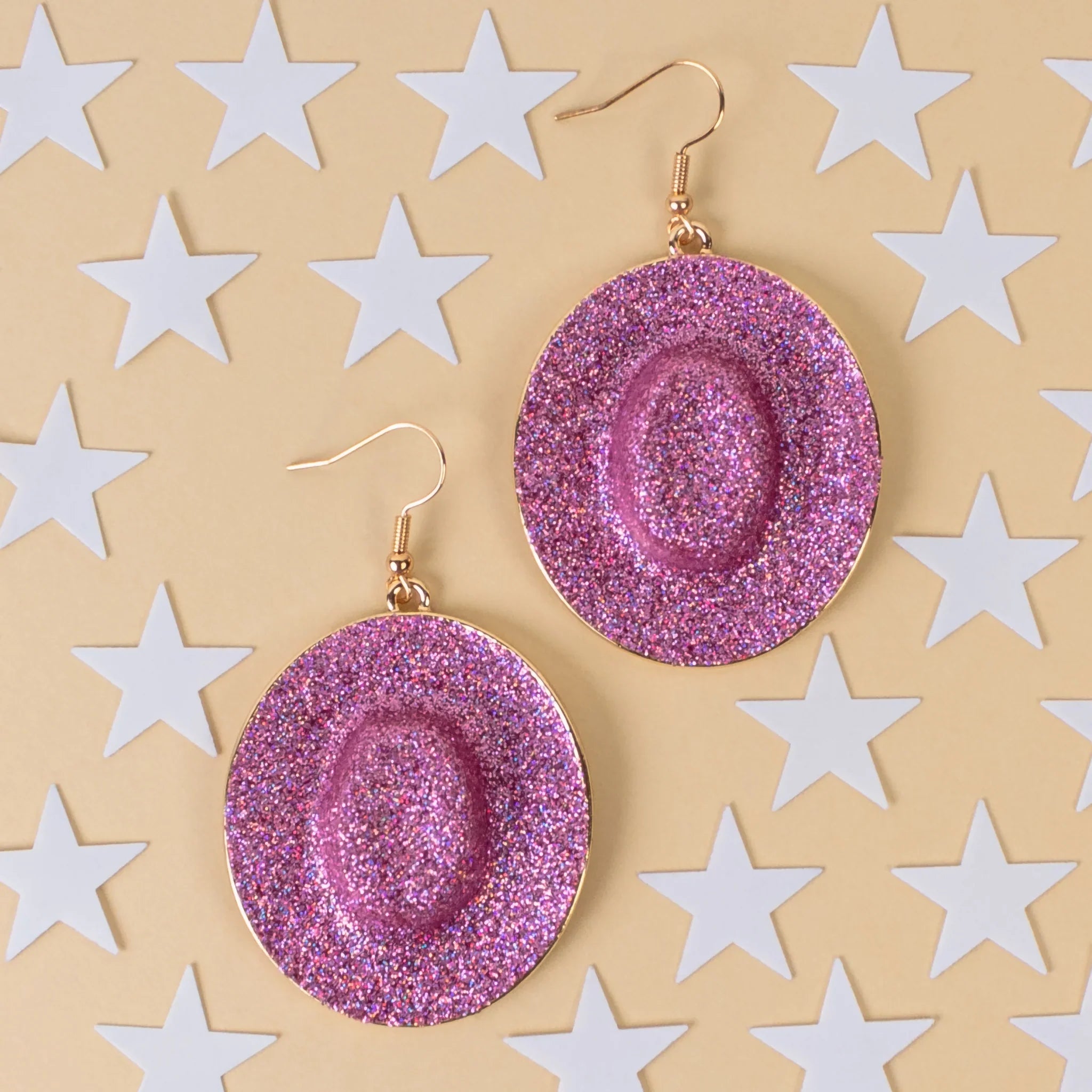 Western Glitter Cowboy Hat Earrings - Purple • Dangle Earrings