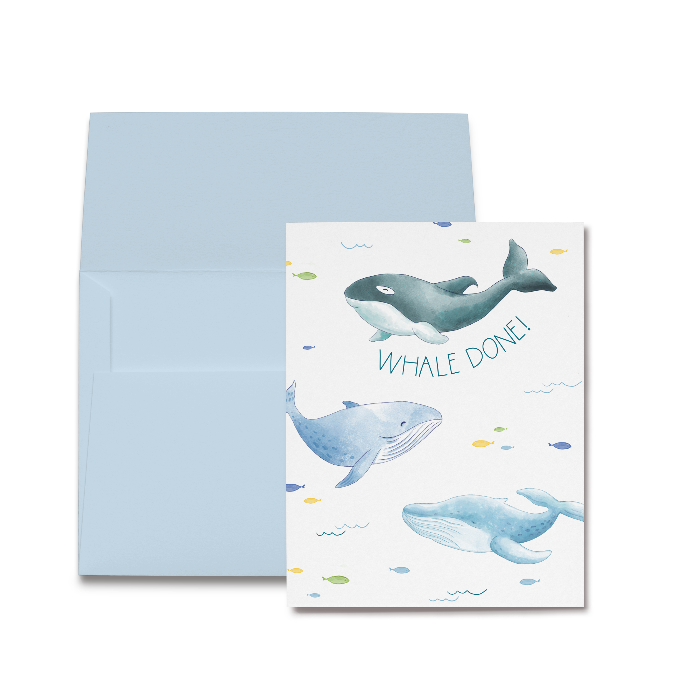 Our Whale Done folded card is the perfect way to congratulate your friends for all of their accomplishments!