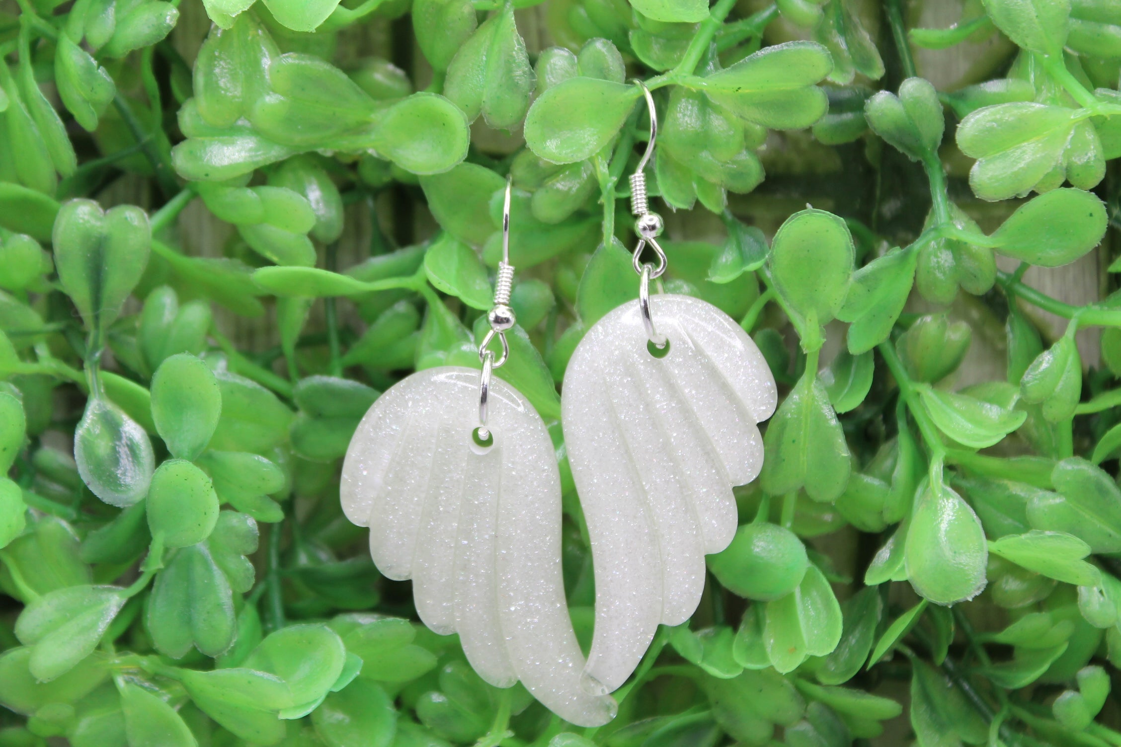 White Sparkle Angel Wings • Dangle Earrings