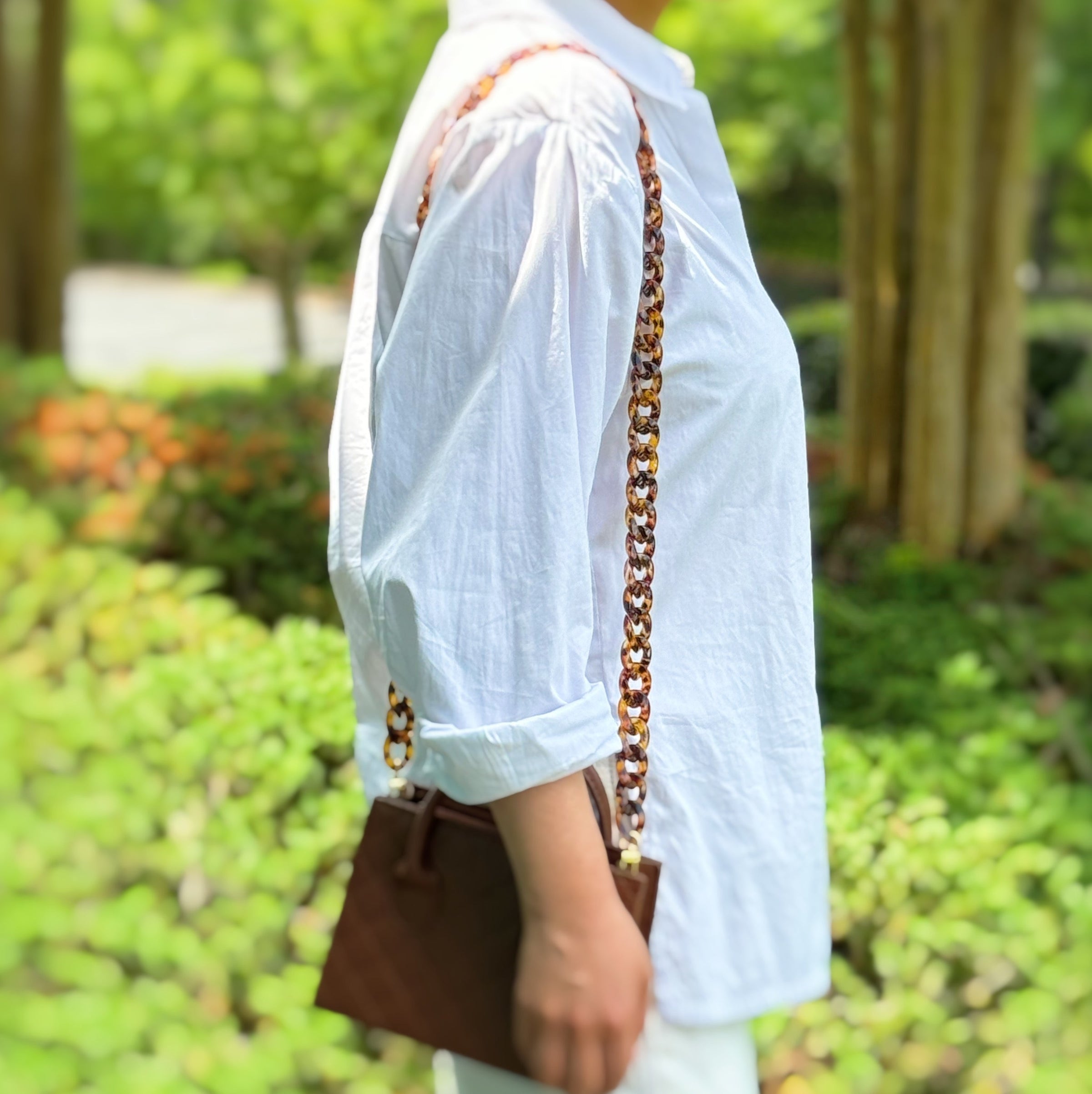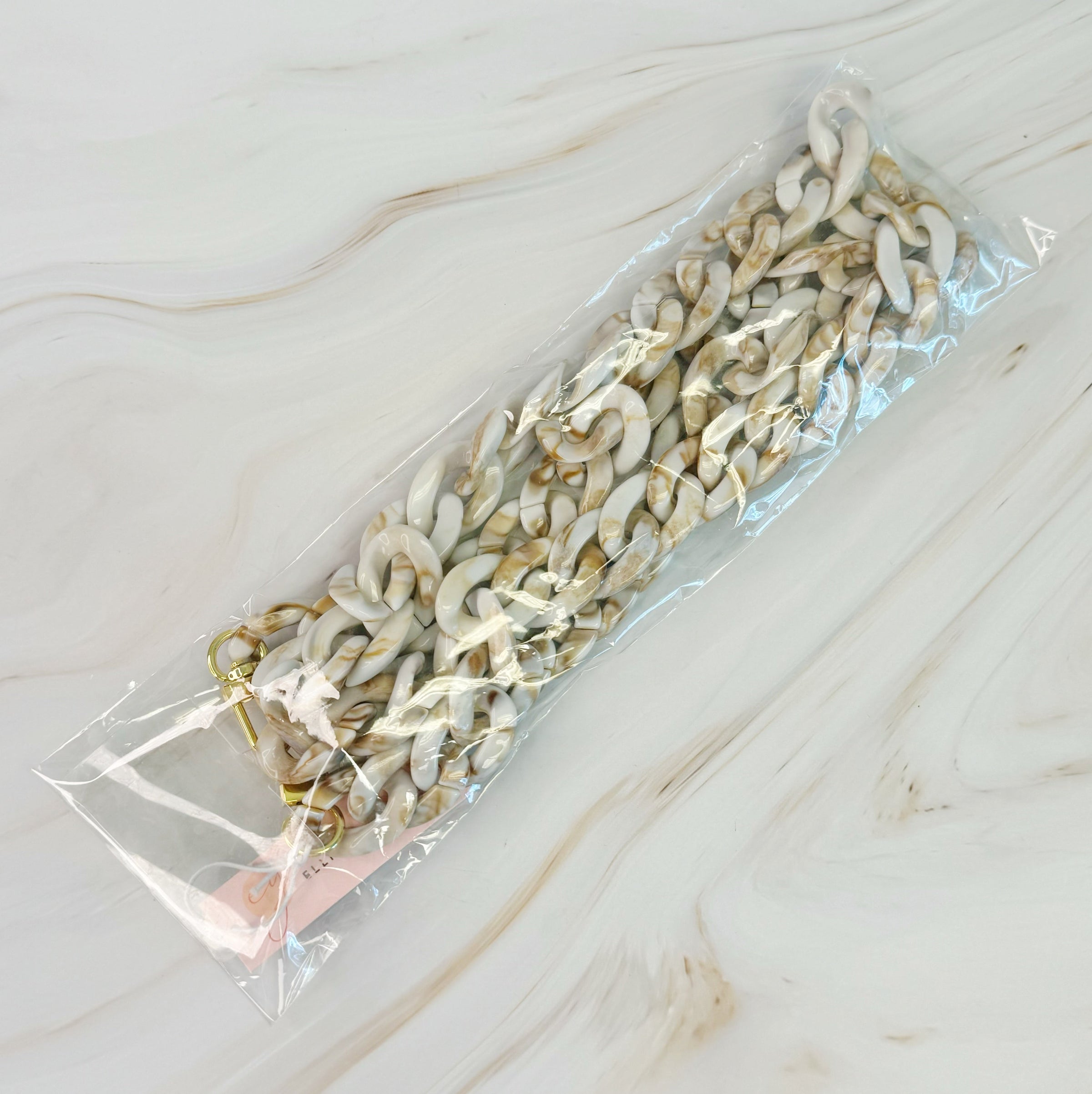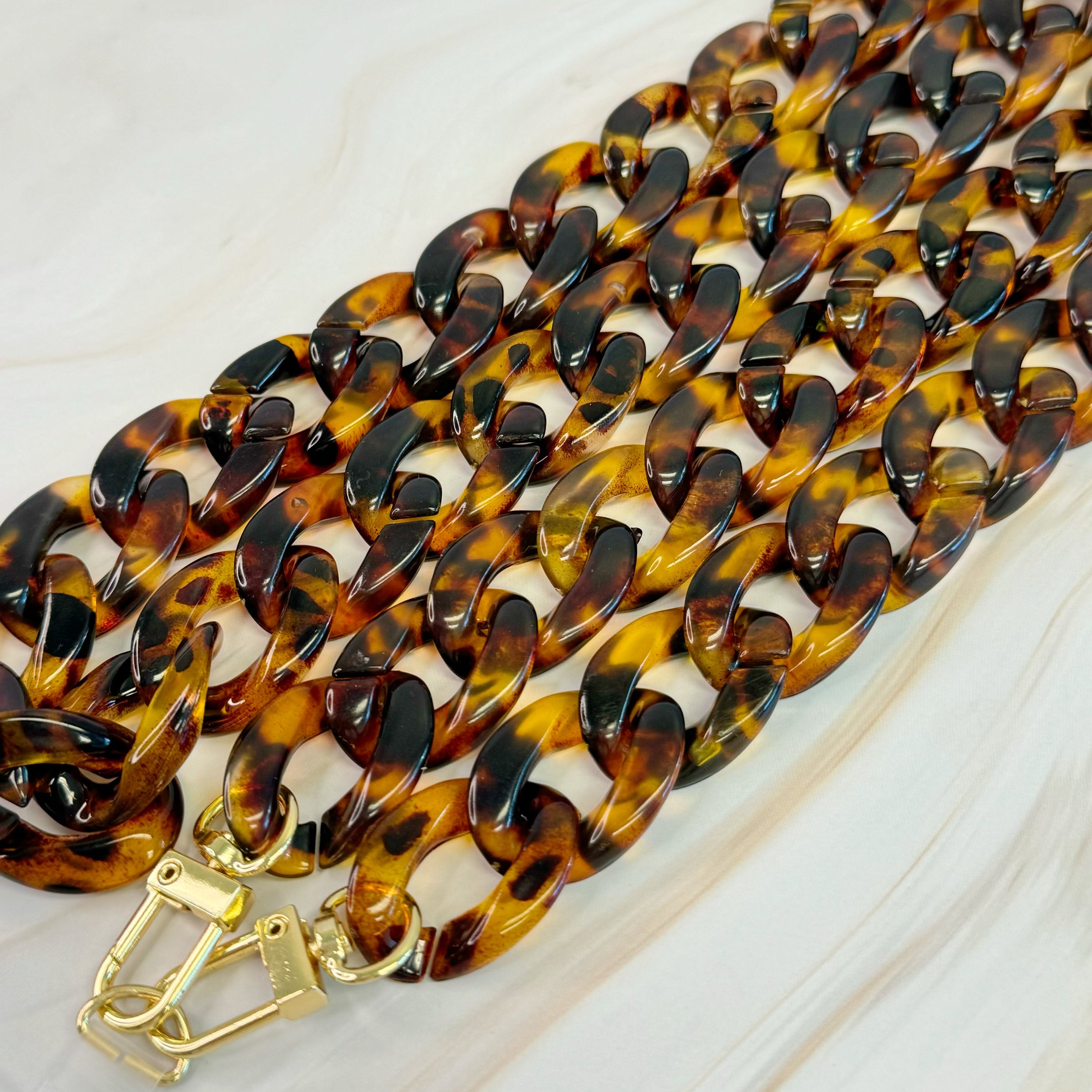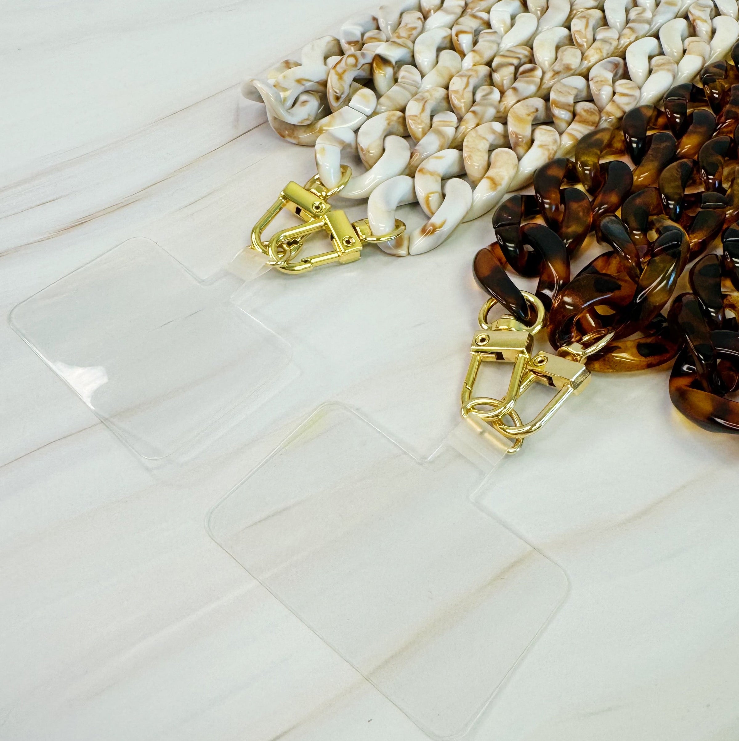 Attach this versatile lanyard to your phone, bags/wallets, ID or keys for hands-free convenience. The beautiful tortoise patterned acrylic chain features golden hardware and includes a cello card for easy attachment. Keep your essentials close and secure with the Wink Lynk Multi Function Chain Lanyard