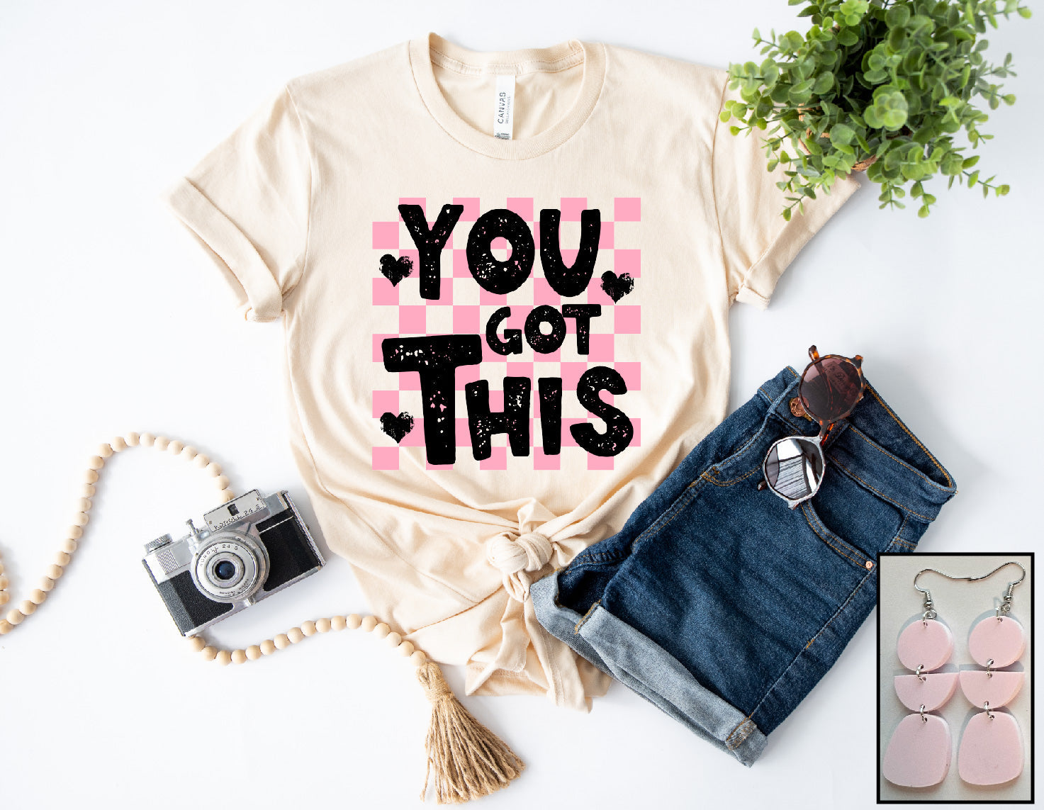 This tee pairs perfectly with our Barley Pink Lola Matte Earring!
