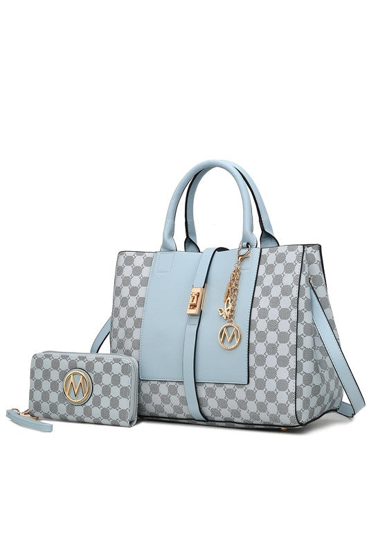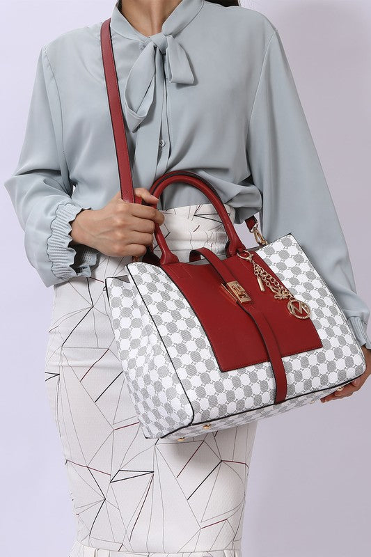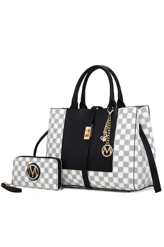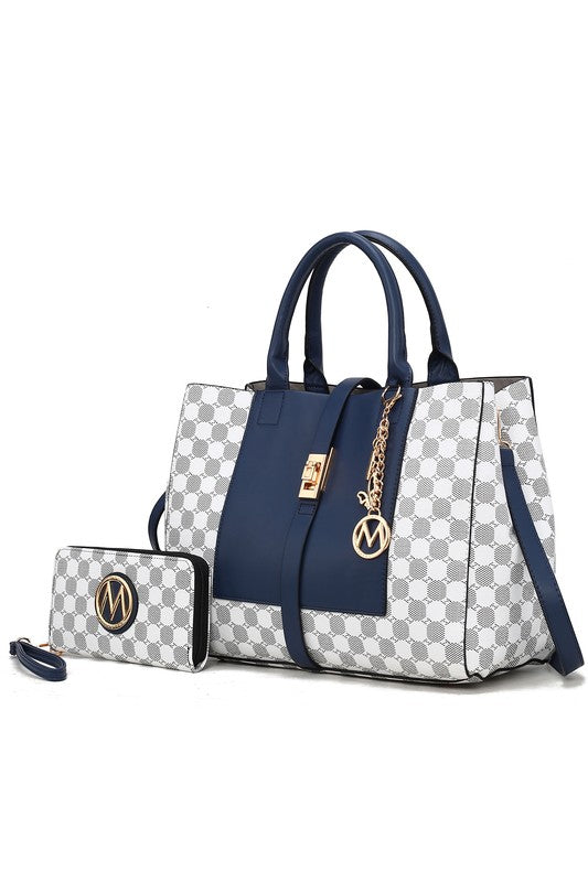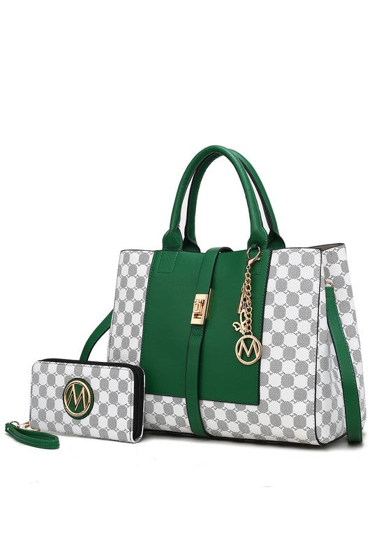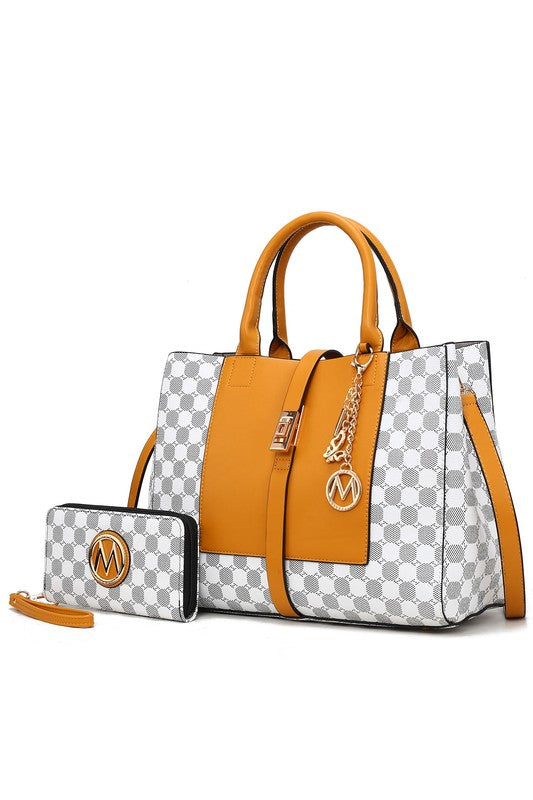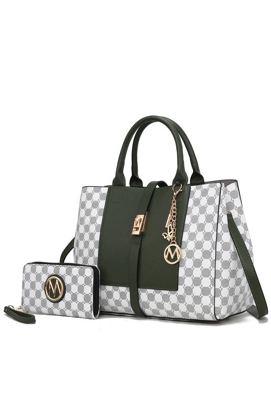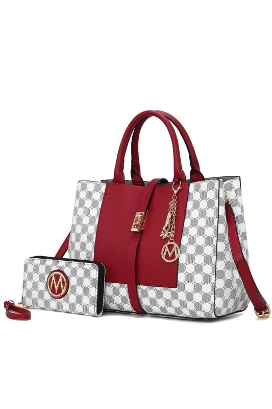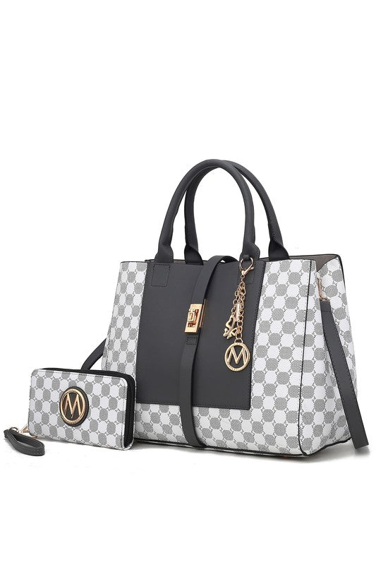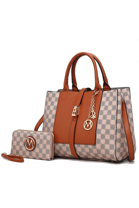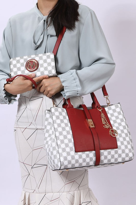 Elevate your style with the Yuliana Circular Print Satchel Bag and Wallet Set by Mia K. This chic 2-piece ensemble showcases a stunning circular print and gold-tone hardware, adding a touch of elegance to any outfit.