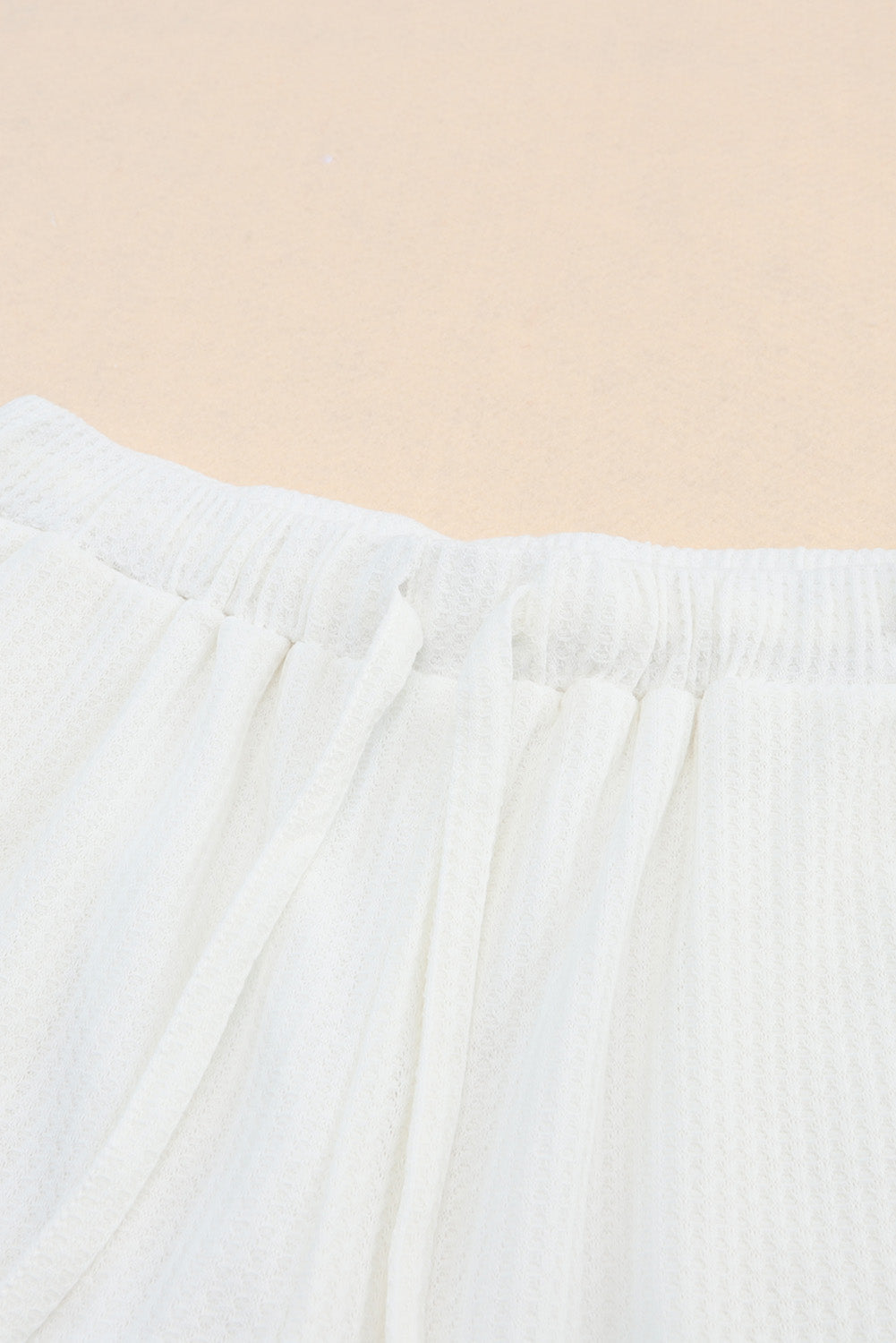• These solid-color casual shorts are a must-have for completing your look. They come with a stretchy high waist, wide legs, and soft material. The waffle knit fabric and lace-up detailing add a playful and adorable touch. Pair with a tee, a shirt, or a tank to nail the ensemble.